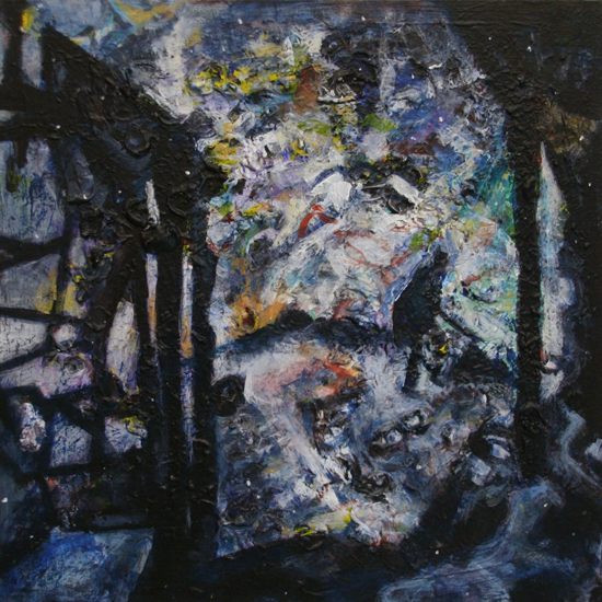 | Cosmos and Anarchy: Kiev 2, acrylic on wood, 12 x 12”, Oct. 2014 - Jan. 2015, (Available as a complete series). Return to Cosmos and Anarchy series| Return to Painting Menu | Artist Statement |
