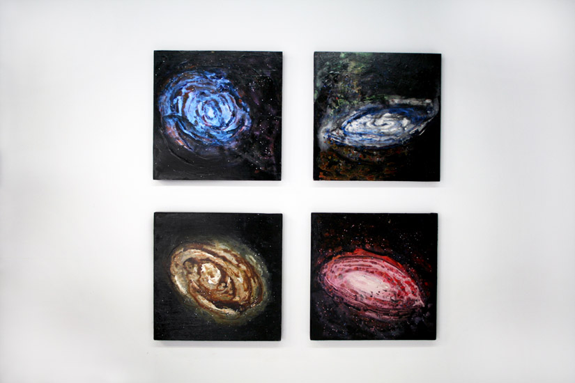 Deep Field: Spiral Galaxy Installation, acrylic on wood, four paintings - 2' x 2' (available)