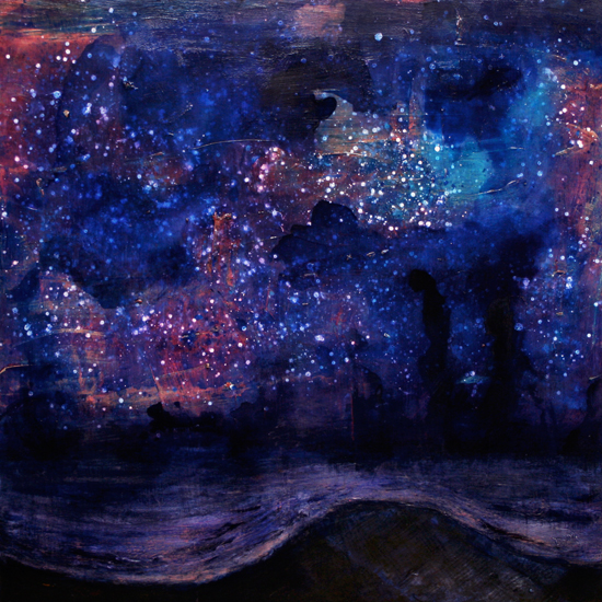Floating World: Cosmos and Tsunami, acrylic on wood, 4 x 4 feet, 2011, (sold).
