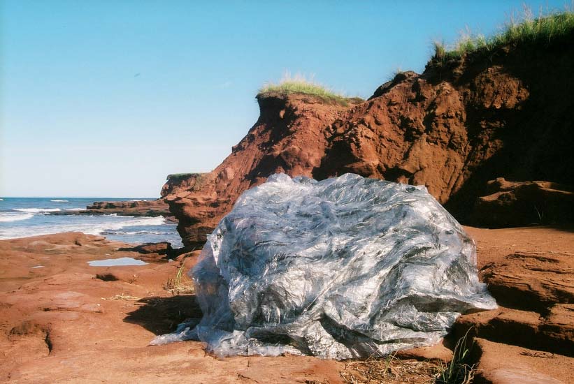 | Plastic Paintings: East Point Blob, acrylic in plastic cling wrap sculpture, photograph of installation, 2007. Return to Installation Menu | Return to Hanlan's Point Installation Menu | Artist Statement |