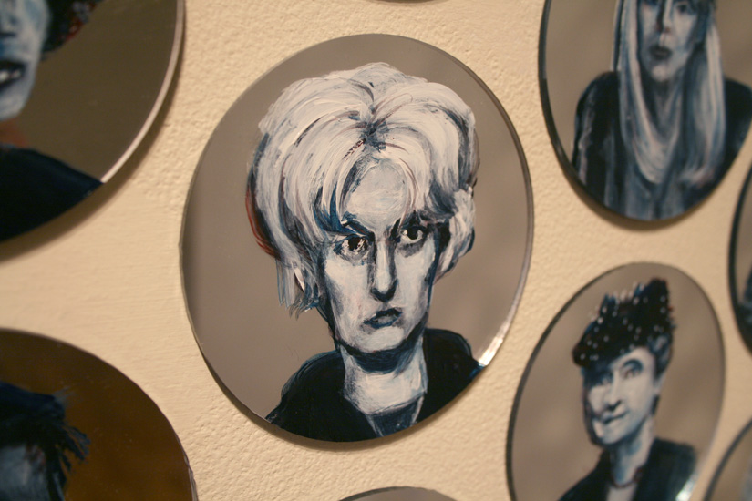 Detail: Mira Hindley, Jewel Net of Indra installation, 1000 acrylic mirrors with 325 acrylic painted portraits, Aug. 2011 - present, photo: Gareth Bate.