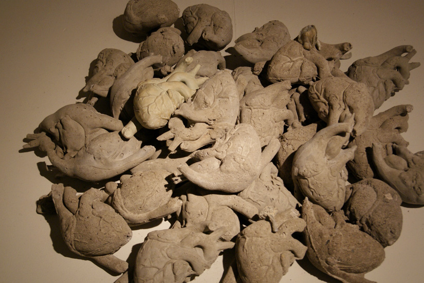 Trish Delaney, 30 Anatomical Hearts, Bronze & concrete, Memento mori, photo: Gareth Bate.