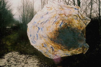 The body of work Plastic Paintings evolved intuitively out of a desire to challenge painting and affirm its adaptability, by extending it beyond the two-dimensional surface out into the world. It incorporates painting, installation, land art, photography and video.